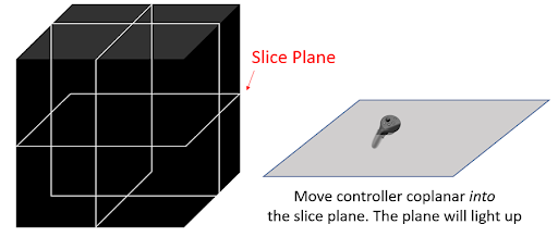To paint on the scene in 3D, you can use the X and Y (left-hand) or A and B (right-hand) buttons. Press and hold Y or B to paint in 3D, and press X or A to clear the paint. You will use this feature to annotate the 3D scene in your lab write-up. The two controllers are symmetric. Press and hold the side trigger with your middle finger (either hand) and “drag” to use the virtual 3D Tape Measure. The feedback displays dX, dY, dZ, dL: the first three numbers are the changes in the X, Y, and Z coordinates; the last number is the length or distance measured.